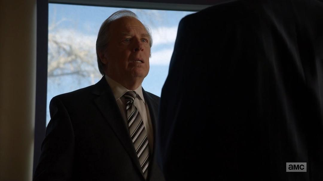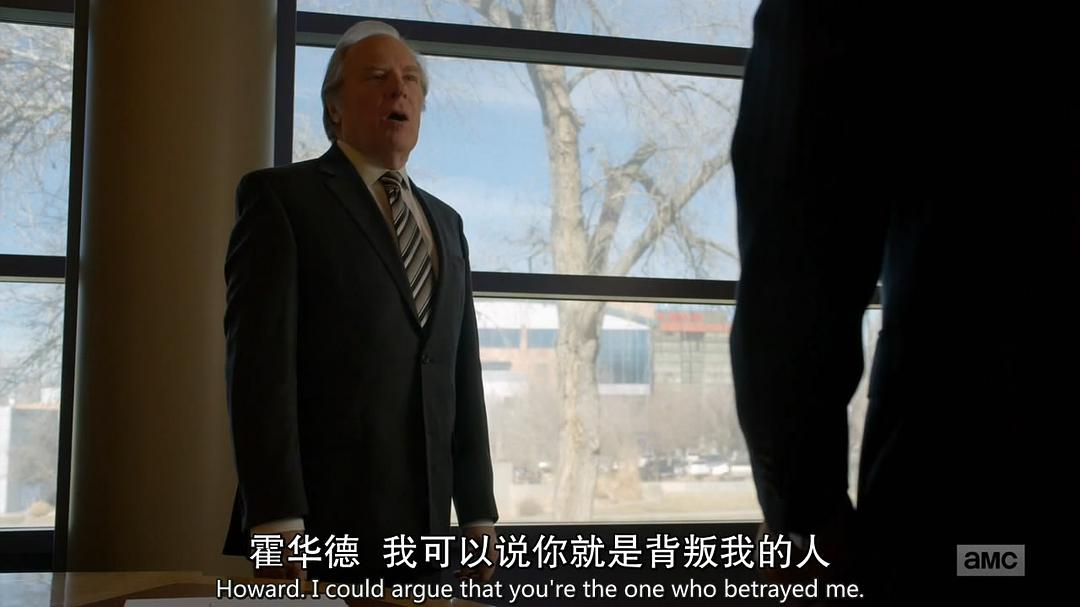 这里还有个值得注意的细节,E01的时候Howard对查克说“你弟弟真的是world-class son of bitch”,说的似乎言不由衷,但明显对查克的做法有些不认同,至于是不是对吉米抱有同情尚不确定,而在E02吉米闯入之后,侦探大叔想冲出来帮助查克的时候Howard却伸手拦住了他,看口型说了一个wait,本能制止却同样选择不作为,成为了推吉米进火坑的又一助力。直到一切成定局,才惺惺作态的蹦出来说,吉米吉米,够了!Howard谈不上是一个自私自利的人,他只是时刻坚守自己的利益阵地,一个从不会落井下石亦不雪中送炭,只肯做锦上添花的彻头彻尾的虚伪君子。