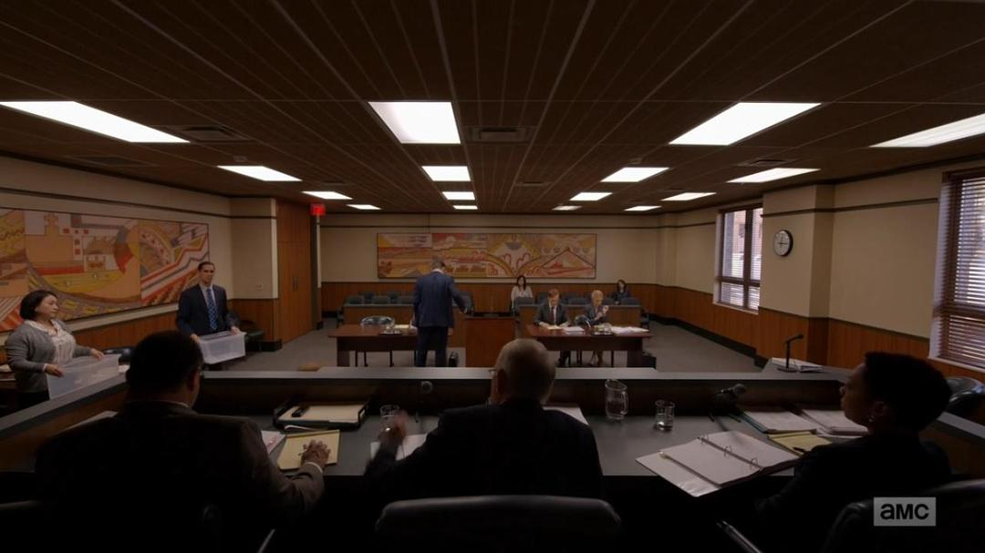 开始我也疑惑是不是同一天,庭审应该是10点开始的,有没有可能查克和Howard之后回家又再来法庭,但是通过一点我确认了这是第二天——Howard换领带了。