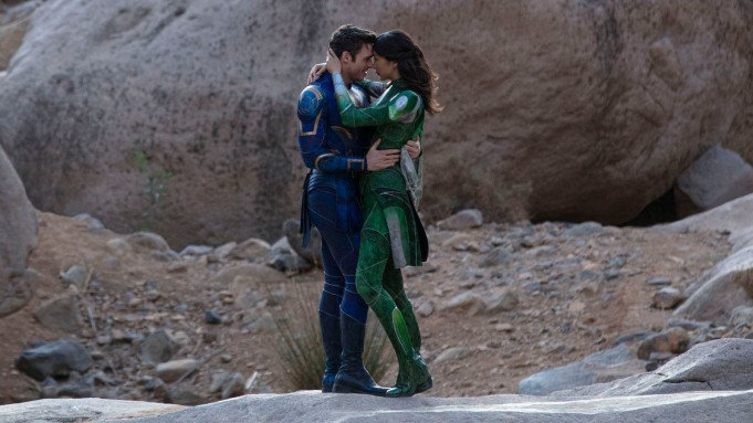 应该说,《永恒族》的成片以某种集大成式的突击步伐迎合了漫威高层向着“政治正确”方向急速迈进的渴求。影片的十位主要人物囊括了亚裔女性、黑人女性、拉丁女性、白人女性、女童、南亚男性、东亚男性、黑人男同性恋等等各种不同的所谓多元文化社会的身份符号。原本在漫威系列电影中占据绝大部分主角地位的白人男性只得到了一个席位,最后还被揭破是最大号反派,众叛亲离只得飞向太阳自我了断。