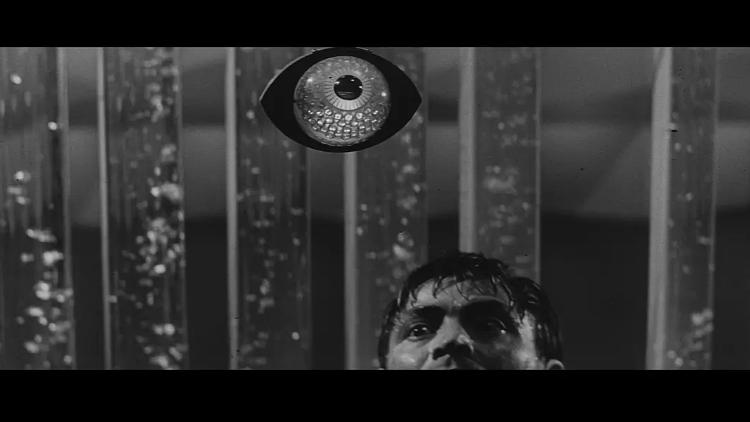 这部初看起来会想到2001太空漫游,毕竟都是莱姆的作品,还有一个眼睛形的监控摄像头,可惜这个设置没有进一步延伸;还有一个视频通话,这个是跟怀孕的老婆通话,然后畅想15年后与女儿团聚,教女儿跳舞,接着发现老婆把职位让给另一位怀孕女同事,只因为她比老婆年轻10岁。