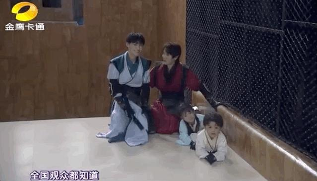 这一次,他俩需要保护两个萌娃完成跨越石板的重任。