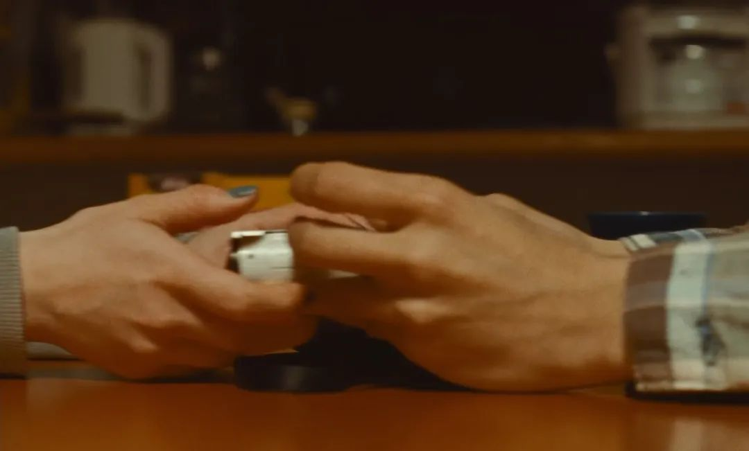 同时,三宅唱也关注到了演员肢体动向的暗示性——例如二人建立交谈时相机在彼此手中有推及、递予的轨迹,不欢而散时弟弟收回了放置在两人之间的马克杯后才离开餐桌——简单肢体动作的纳入,建立在片中以“手”为交流媒介的基础上,立刻就点亮了语言体系,使其愈加鲜活起来,在我看来可以比拟蔡明亮电影中身体叙事的高效性。