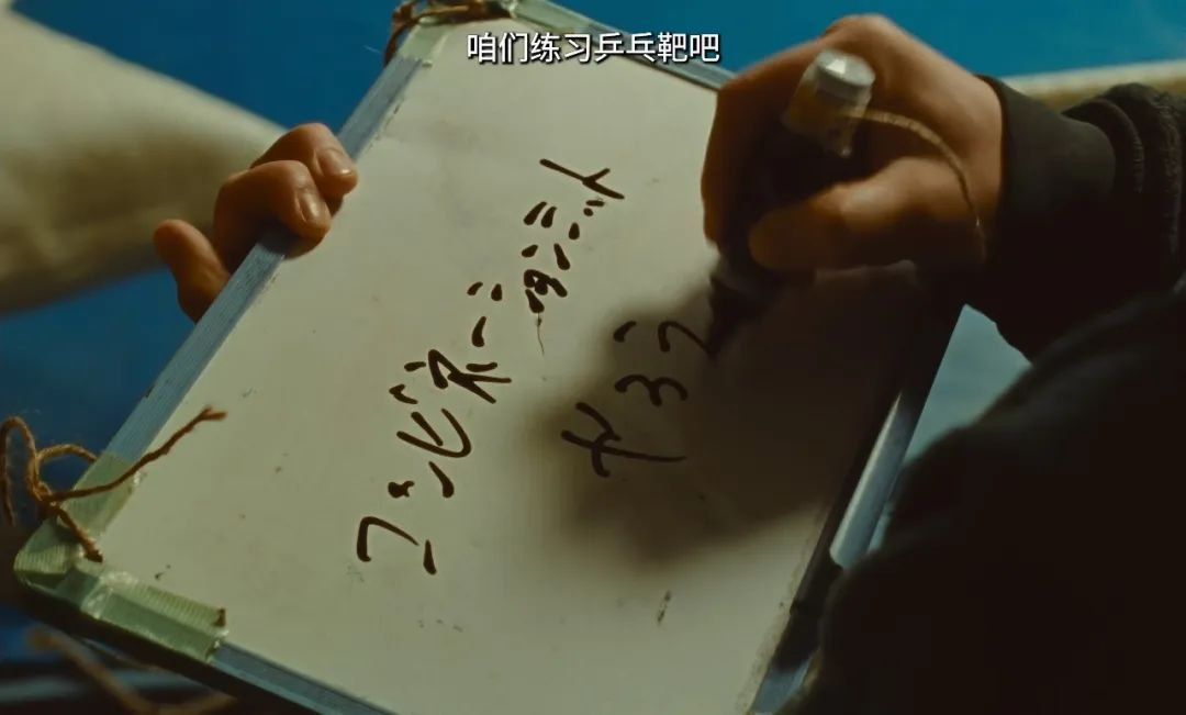 从构图的变化上也可以看出,惠子独自在拳馆代替会长擦拭镜子时,回头注视无人的空间,她看似仍是独身一人,但心理上的变化让她已不再感到孤立无援,而坦然自若地扭回了头;家中餐桌旁的构图里,惠子也第一次没有成为被留下的孤独背影,走出了那道封锁的门框;最显著的是,她与松本教练练习乒乓靶时,拳台下的另一对教练与学员观察、模仿着她的步伐,四人的身影呈纵深关系,共同映照在了曾象征孤独的镜中,呈现出一个拥有同一目标的互助群体似的集合形态。在此时,曾经被动地发出凝视目光的惠子也成为了他人凝视的对象。