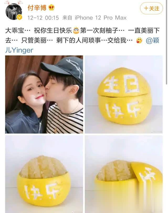 最近颖儿生日,付辛博微博晒出的礼物是在一个柚子上刻了“生日快乐”……看到这样的送礼方式,感觉他还没有忘记昔日男团的队友。