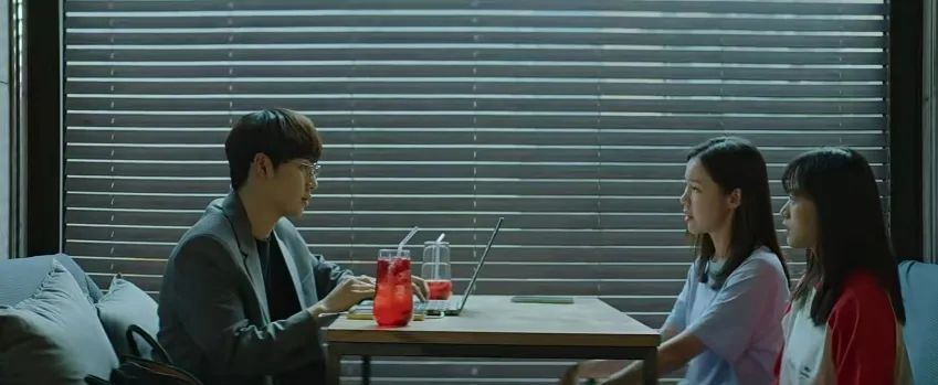 视觉上鲜红色的李子汽水在灰调的画面中格外显眼,在这里红色是一个暗藏危险的信号,符合这场戏平和之下暗涌的紧张气氛——