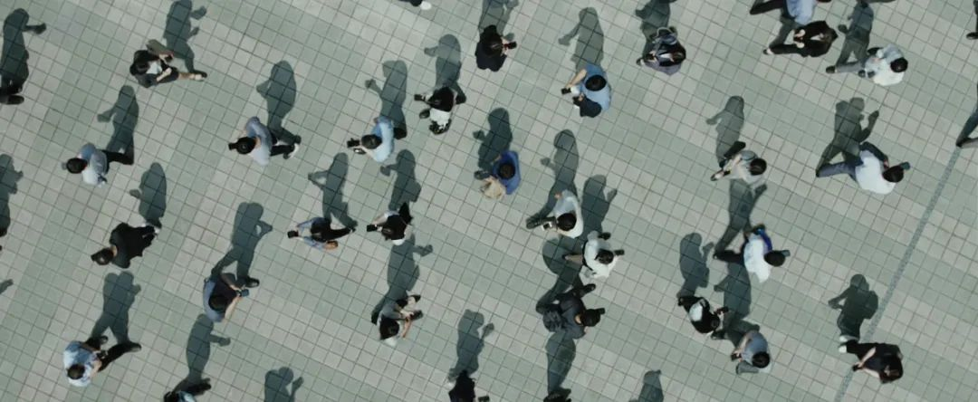在鸟瞰镜头下,我们能看清的是影子的姿态,而非那个人本身的样子。