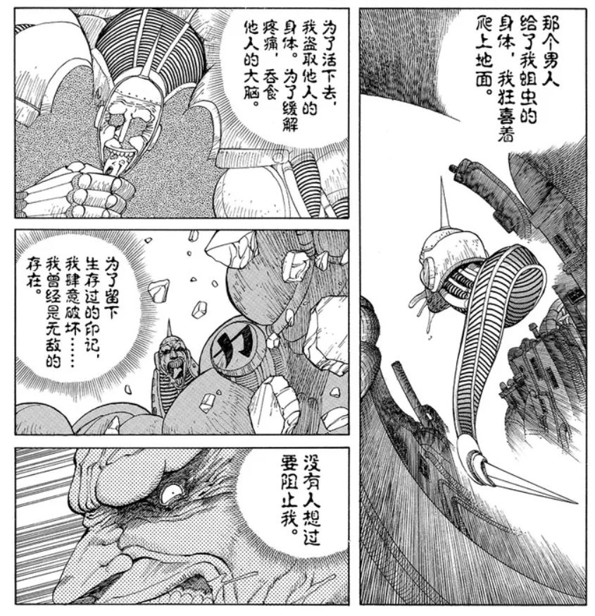 《铳梦》的高级之处,还在于作者强大的思辨性。漫画里无数穿插的小故事,都是作者在思考人的精神世界的反应。