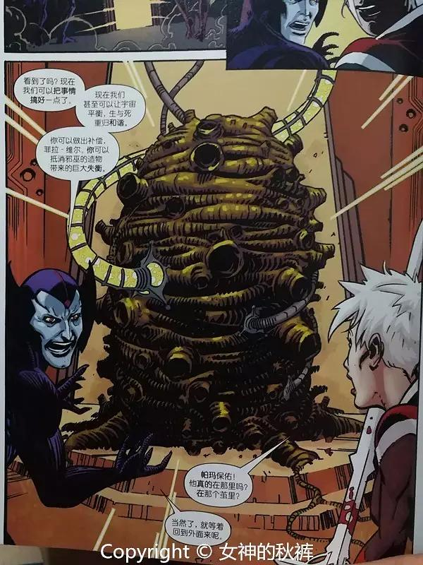 电影中Ego的身份是天神组之一,但在漫画里并没有沿用这个设定。实际上在第一部电影里大家已经看到过天神组了,第一个出现的天神是一颗脑袋,也是银护一行人逃出监狱后的目的地Knowhere星。