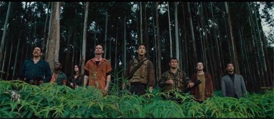 电影开头一段意义不明的太空追车,啊不追飞船,一艘飞船在追兵的压力下掉在了地球某处。我们的男主McKenna刚好带队在这里执行暗杀任务。人在林中卧,祸从天上来,队友一个一个都挂了,男主虽然还没看见凶手,但捡到了飞船上掉下来的面罩和手甲。没有接触过外星人的男主自信地玩起了未知武器,男主瞎摆弄手甲的时候我就想到前几部里面,铁血战士的手甲里面有核爆装置,我心说如果这时候他给引爆了,那就是神作了。然而并没有。他从里面抠出了主管隐形功能的小钢珠(不要问他怎么知道的,也不要问铁血战士的盔甲设计怎么这么傻缺)。