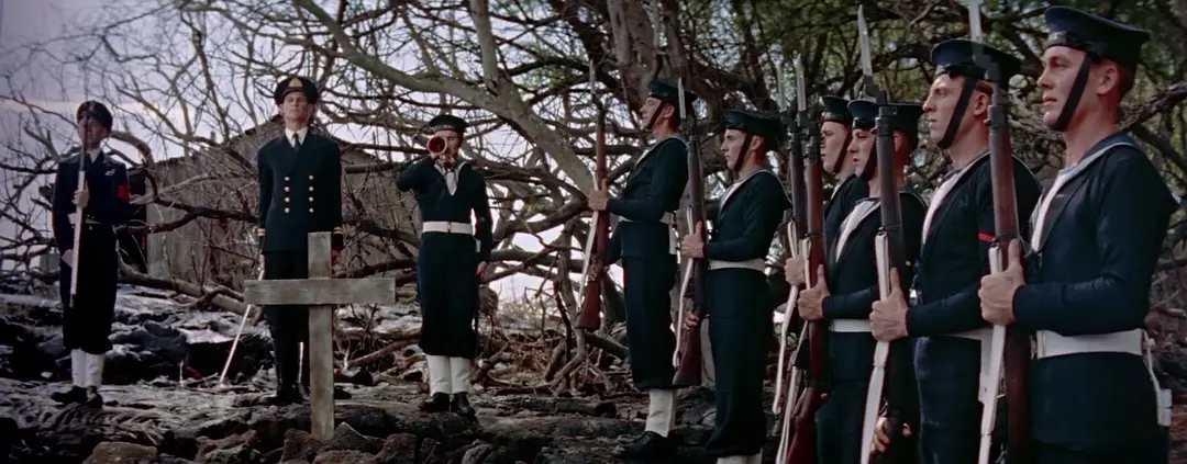 船员沃尔特下海游泳,被鲨鱼袭击,船员们拼力把他救回来,他却永远的失去了一条腿,但是随之而来的坏疽将要了他的命,沃尔特意外听见了船长为了救他不惜让全船人成为俘虏,准备向罗克汉普顿号发出求救信号,他毅然选择了自杀。经过深思熟虑,卡尔把老人海因茨,受伤的温克勤和沃尔特的尸体留在仅剩的一条救生艇上,等待罗克汉普顿号的到来,艾根号起锚悄然离去。