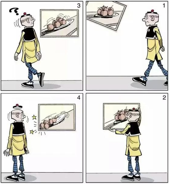 简化叙事背景是本片的基础思路,但元素越简约,故事就越机械,可信度会大大降低。如何平衡结构上的真实性和简约性呢?恰好前辈已经有了方向,《我的邻居山田君》(高田勋,1999)提供了一种方便的思路:四格漫画的动画化。四格漫画——以一页四个画面分格(画框)来完成一个小故事的表现形式,由于其稳定的画框分割和独立的单页结构,天然适合群像式的起承转合小段子。
