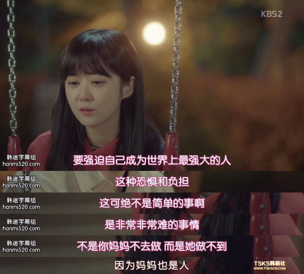 n为人父母最大的牵挂就是儿女。儿女存在的意义在父母心里重于一切,尤其在母亲心里。当珍珠妈妈知道了女儿的心事,虽然她不明白这其中到底发生了什么,她还是主动帮助女儿达成最后心愿。n和妈妈一起泡澡,和妈妈去KTV,和妈妈喝酒以及和妈妈道别。全是泪点。n妈妈安慰着泪流满面的珍珠:“人可以失去父母,但没了孩子就真的活不下去了。所以你回去陪你的孩子吧。所有的伤痛都会过去。坚强起来。养育着孩子一切都会过去。”