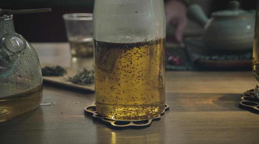 这段回忆,可能是杰克在悲痛哀悼中回想起来,也可能是来自于杨,他的记忆库里无休无止地播放当时的对话。杰克引用的这段话来自于2007年的老片《尽在此茶中》,这部纪录片是主角沃纳·赫尔佐格跑遍半个中国的寻茶印象之旅。(“科林在此处的表演实际上是对赫尔佐格的高级模仿,他认为杰克必须放低自己的姿态,因为像他这样的人一般不会主动泡茶,” 郭共达透露,“此时的他就像被赫尔佐格附体了。”)