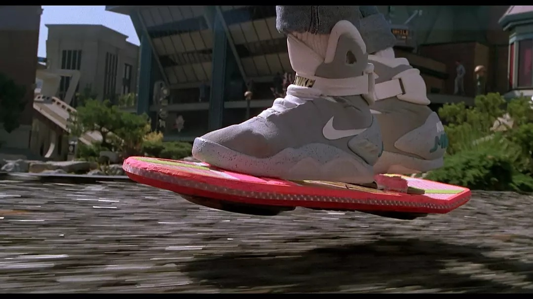 苏睿给特查拉介绍她研发的最新科技时,让哥哥试穿了一双能自动缩紧的鞋子,说它们就像父亲生前常看的美国电影一样。喜爱科幻片的观众一定知道,这部电影指的是《回到未来2》,里面主角就穿过一双有类似功能的NIke滑板鞋。