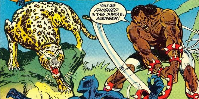 苏睿给哥哥准备的两款黑豹项链中,金色链子实际上来自黑豹在90年代漫画中的造型。后来我们可以看到Killmonger戴上了金链子,化身形象凶狠的金钱豹。实际上,在漫画里Killmonger就有一头宠物美洲豹,名叫Preyy,首次登场于漫画Jungle Action #6。