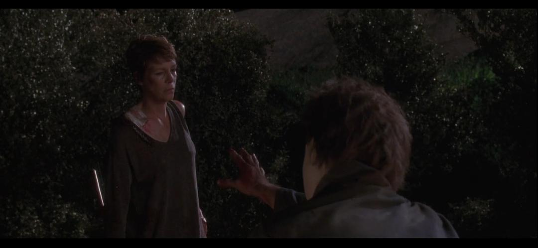 影片的最后,Laurie看着无助的向她伸出手的Michael,含泪叫出他的名字,以及想要握住Michael伸出的手的片段非常棒,但是她突然意识到,这一切必须来一个了结了,随后砍下Michael的头颅,伴随的卡朋特经典的配乐,影片结束了。