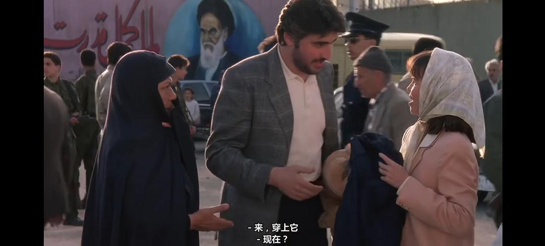 到了伊朗,刚下飞机,他们一家三口,受到的是穆迪整个家族几十口人的热情迎接,这一开始让贝蒂感觉还是比较开心,可紧接着马上收到穆迪姐姐送出的礼物:一件Chador(中文音译“恰朵儿”)伊朗妇女穿的黑色罩袍。