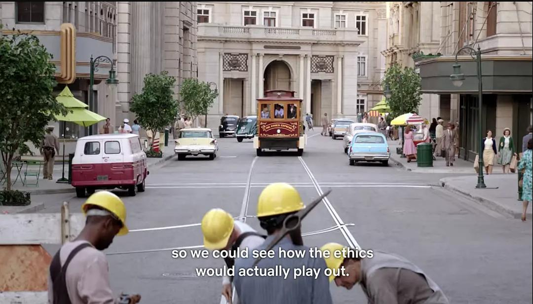 這部劇的一個highlight之一, 即是將為許多人所知的著名火車扳道實驗真的拍了出來。 The trolly problem 是一個蘇格蘭哲學家Philipa Foot 提出的思想實驗,大致為: