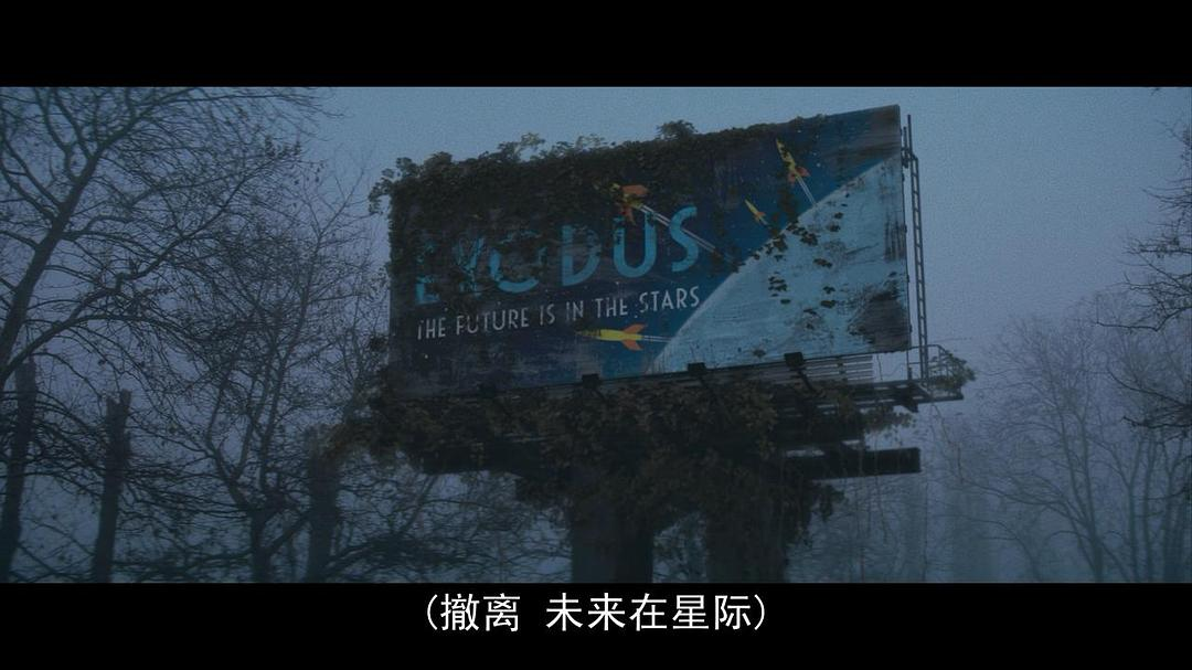对此,影片中用星际邮件的形式陈述着故事的第二条线索,Sam的朋友Elon从IO殖民地上时不时地向她报告着人类在星系之中的生活与探索,他们为已经逃离了地球而庆幸,为Sam及其父亲滞留在地球而焦虑,为能够在外太空探索一颗新的地球而欣喜。这也正是与Sam及其父亲选择坚守在地球完全不同的重生路径:逃离并抛弃地球。正如那块广告牌中的文字所述:“Exodus-The future is in the stars.”