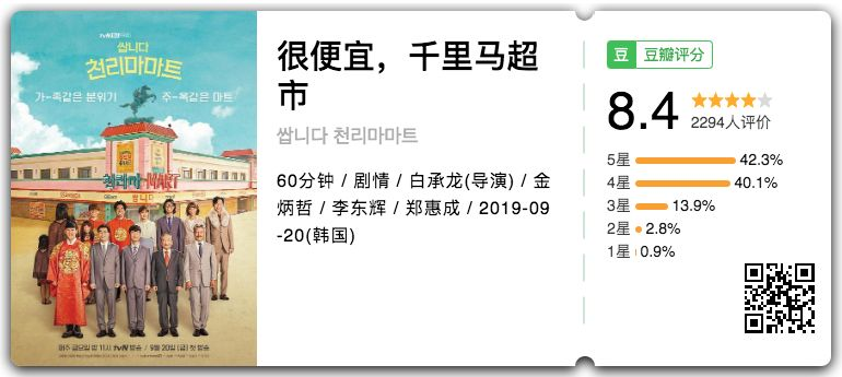 쌉니다 천리마마트n导演:白承龙n编剧:金率智n主演:金炳哲/李东辉/郑惠成/朴浩山/李顺载n首播:2019-09-20(韩国)