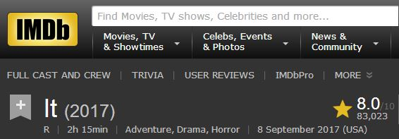 影片改编自恐怖大师史蒂芬·金(肖申克的救赎,魔女嘉莉,迷雾,1408幻影凶间等)1986年的同名经典小说,一经上映便成黑马,打破多项票房纪录:北美恐怖片票房首映日影史最高,9月北美票房影史最高……