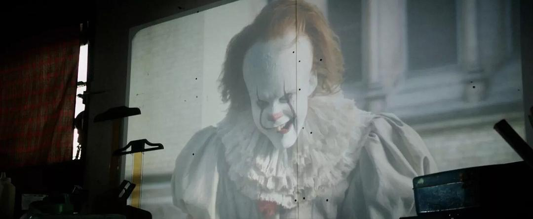 小丑玩偶房里的小丑n在屏幕的左侧后方,致敬1990年迷你系列蒂姆·克里版的小丑。n