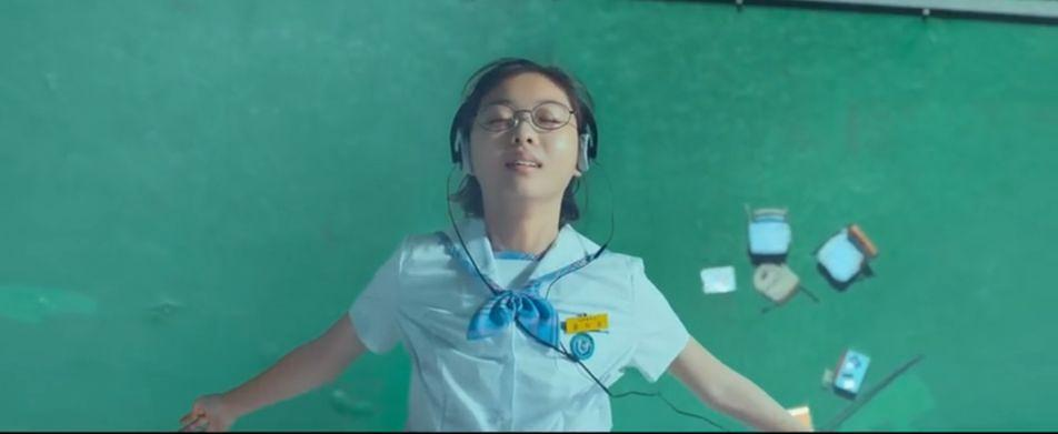 小时候的女主戴着耳机,一边流泪,一边躺着,UFO第一次出现。