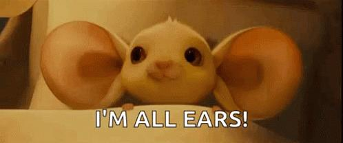 be all ears 洗耳恭听,是高频且好用的一句俗语,当我们对对方说的话很感兴趣,急切想听时,就可以说I'm all ears, 愿闻其详,洗耳恭听。