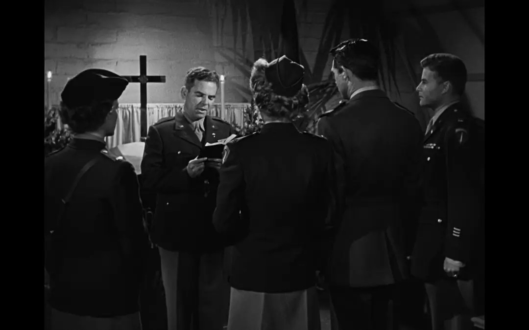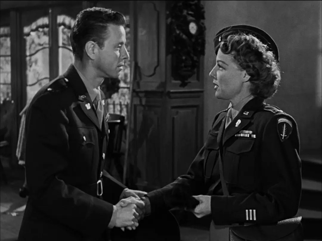 在草垛里盖茨主动向亨利索吻,这一吻让两人都上了头,一吻再吻,一发不可收拾。回到美军总部,带着一身的麦草的两人立刻向长官普伦德加斯特少校提出了结婚的申请。少校提醒两个人面临着一个现实的阻力,就是美国军人和外国人的婚姻,还有上尉结婚必须经过司令允许,军人结个婚真的是手续繁琐,层层审批。