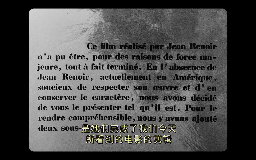 花絮2 提到让·雷诺阿拍摄这部影片的经历,以及在他去美国后,这部影片的再生,虽说符合让·雷诺阿的一些成片剪辑意向,但非完全导演控制的这块,终究能感到遗憾,此间可在后面的花絮《乡间拍摄》中感受到;
