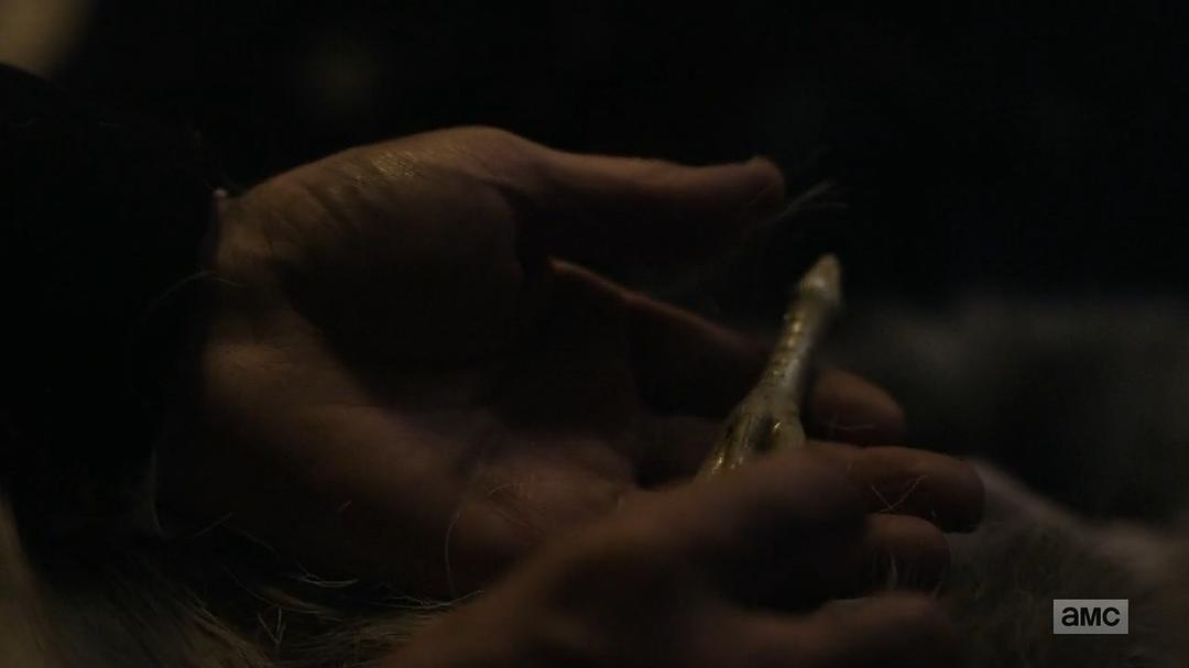第三集片头,船员为萨满收拾遗物,漏掉了一些物品,随着萨满掉进深坑。沉默小姐所求未果后离去。