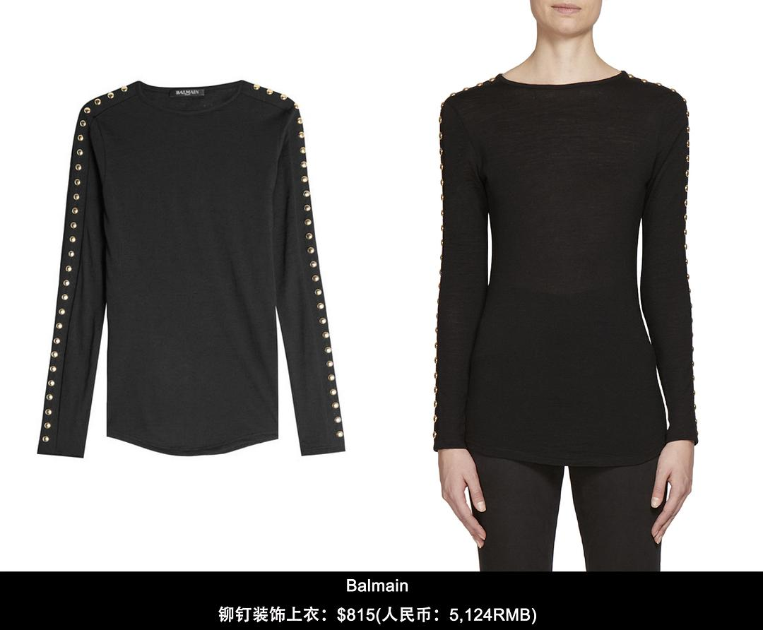 铆钉装饰上衣:$815(人民币:5,124RMB)