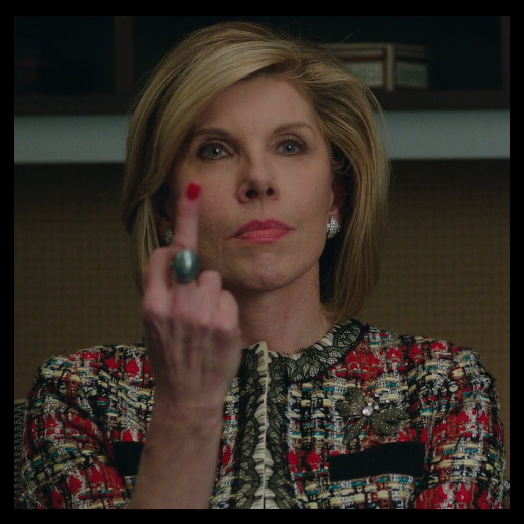 Kill All the Lawyers 的主题直指特朗普对司法制度的践踏,而令 King 氏夫妇失望的是,好像所有人都拿他赤裸裸的歧视(白人至上)没办法,整个第二季都充斥着这种在疯狂世界里束手无策的无力感。