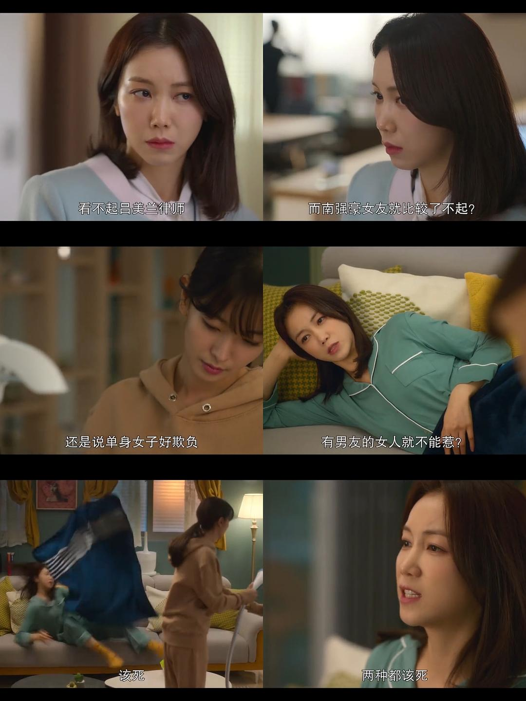 这样一个女主角,一个独立强大的女律师,编剧强调的是“甚至比男性更有力量”且“和男性一样劈腿”。剧本从头到尾没有展示任何专业律师的素养,毕竟是女律师和男明星这种玛丽苏剧情,本就不现实,这已经是最小的槽点。不是说一个女性主义者不能谈恋爱,但女性主义是一个严肃的话题,关于父权制、关于爱情和婚姻、关于社会分工、关于家庭和育儿。如上野千鹤子老师《厌女》所说,对于女性的压迫,既来自于男性,也来自于女性。要让社会了解女性主义,至少要传递的很多女性受困于父权制下的婚姻制度,没有选择的自由,在学校和职场等中受到不公。但这样一部打着女性主义名号的影视作品,虽然点出了一些性别不公平的问题,但表达的都非常直接明显,在编剧上没有一丝巧妙和反转,对于男主主角、女性和男性闺蜜的性格表现非常单一,只有恋爱套路,毫无更多内涵,但我想问,为什么女性一定要有力量,还要强过男性,为什么要设定这么表象的女性主义者,什么撩各种男人是为了给渣男一个教训,comeon,这到底在传递什么。一个强大的大女主是能扛住苦难,内心坚定,不是要和男性比较,而是有自己的优势,有自己的位置。