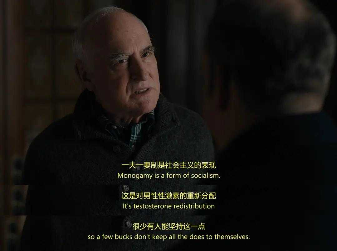 围炉谈话那部分的台词写得很好,这是这两年美国的热点话题-new capitalism,去年10月份的时候Salesforce 老板Marc Benioff在NYT发了篇文章,大意:It’s time for a new capitalism — a more fair, equal and sustainable capitalism that actually works for everyone and where businesses, including tech companies, don’t just take from society but truly give back and have a positive impact(现在是时候建立一个新的资本主义了--一个更加公平、平等和可持续的资本主义,真正为每个人服务,包括科技公司在内的企业不只是从社会上拿走东西,而是真正地回馈社会,产生积极的影响),而且Benioff本人也在身体力行的做慈善事业,比如捐款给无家可归者和儿童教育、改善社区治理等等,从台词来看,我觉得编剧基本上是从benioff那篇文章来的灵感,那么new-capitalism这个话题的美国现实背景是什么?这里我推荐最近刚看完的一本书,美国西北大学教授Robert J. Gordon的《The Rise and Fall of American Growth》,已经有中文译本《美国增长的起落》,看完你就会有答案....