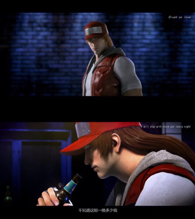 特瑞——一张年轻的脸上挂满了象征沧桑的胡渣,虽然是个很符合人物早年经历的形象,但不帅就是不帅,反正游戏里的风格跟这个完全不同,而这种混搭我只能说够颠覆、够清奇。
