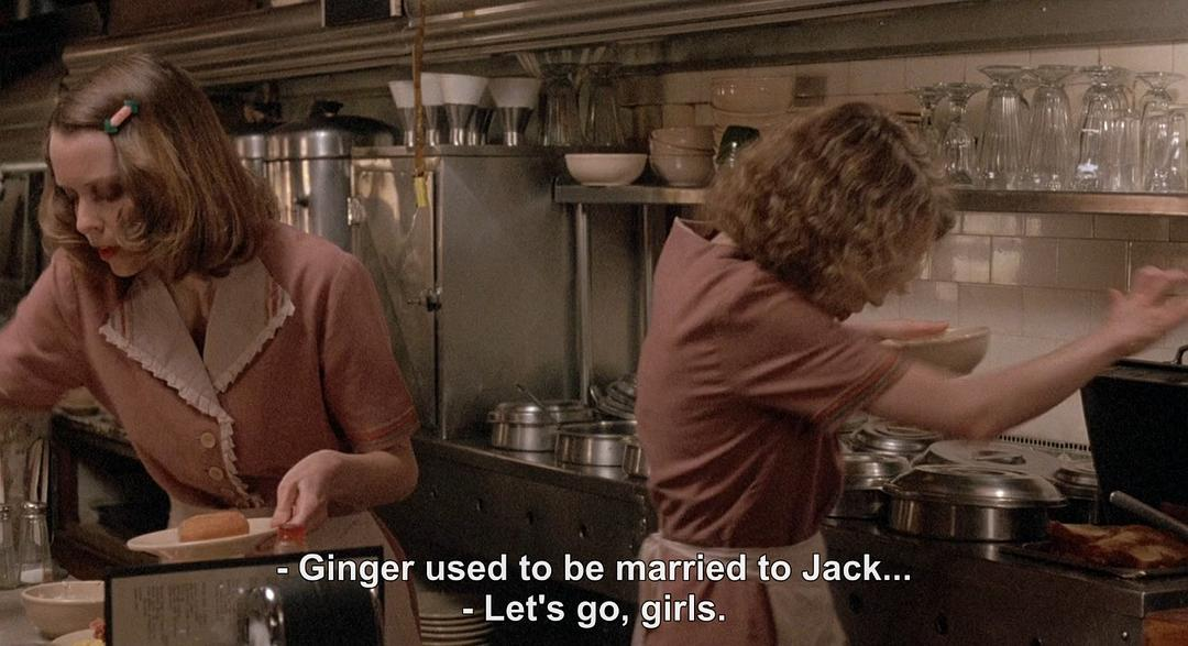 根据时间推断,此时金杰·罗杰斯正与刘·艾尔斯在婚姻中,而两人的婚姻是在1934年11月-1941年3月,可推断电影故事发生的时间在这期间,这时金杰·罗杰斯的前夫是Jack Pepper.