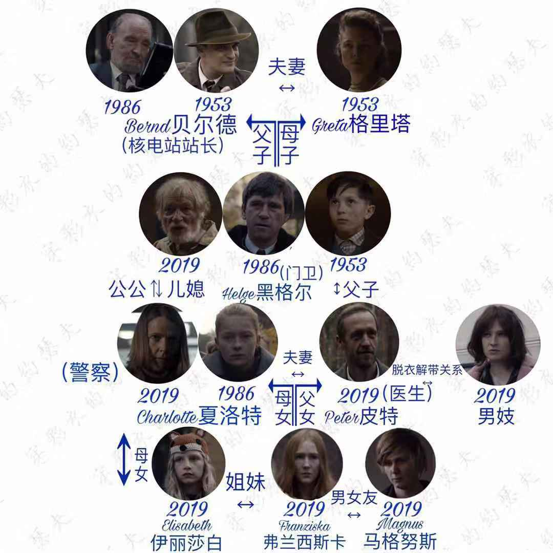 n 33年一循环,洞穴里的三个密道分别连接首尾相接的1953年,1986年和2019年。nn 一些因果论,比如终极秘密——自己喜欢的女生的弟弟是自己的爸爸,还有其他一些细节,比如黑格尔脸上的疤,以及比较惊悚的米凯尔出现在1986年班级合影里,乌利希是1953年的绑架犯,两个儿子失踪的夜晚爸爸都有在跟别的女人搞婚外情,克劳蒂娅和成年约拿在1953和1986年的两次助攻和乌利希丢下的手机促使坦浩斯造出最后摧毁黑洞的装置,以及评论提到的,成年约拿企图破坏时空门的做法恰恰创造了黑洞。nn 以及一些没填的坑,感觉1986年的亚历山大,2019年的法兰西斯卡也都是穿越回来的人物,角色本身带着一种不简单的气质。