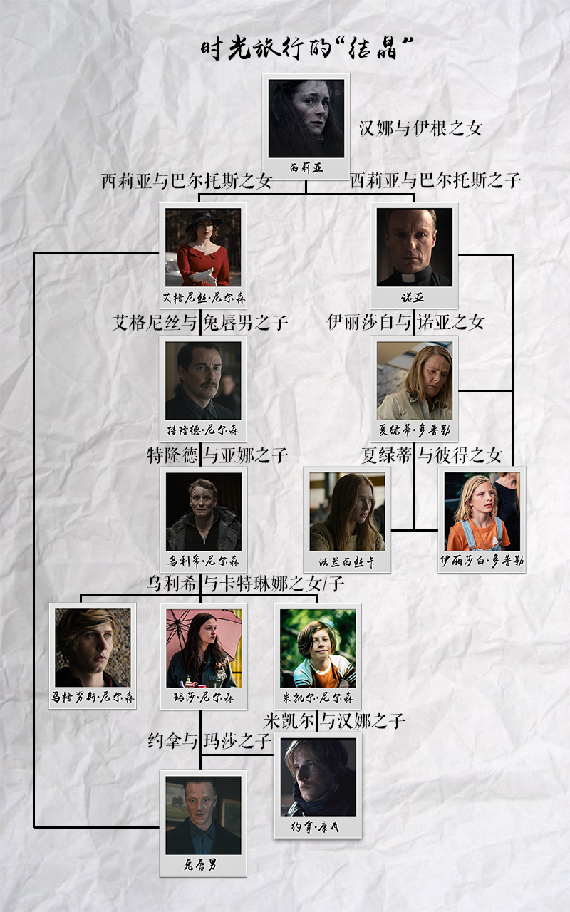 而在新世界里,老年玛莎向约拿(Jonas)展示了完整的温登家谱,并说两个世界是一个密不可分的“结”。根据截图所示,我们可以看到:汉娜则会和某个蒂德曼生下西利亚·蒂德曼,由伊根·蒂德曼,猜测西利亚·蒂德曼会是他。斯·蒂德曼和西利亚·蒂德曼尼丝和汉诺·陶伯,汉诺·陶伯就是诺亚,而也巴尔托斯和自己的姑奶奶生了孩子。而艾格尼丝则和某个神秘人生下了特隆德。