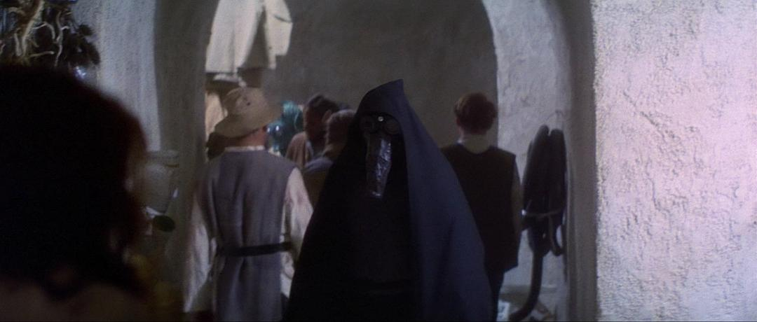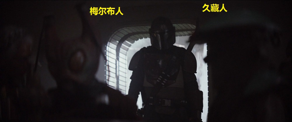 在这个场景的近景处,可以分别看到梅尔布人(Melbu)和久藏人(Kyuzo)。梅尔布人最早出自《游侠索罗》;久藏人最早出自2010年的动画连续剧《克隆人战争》第二季第17集《赏金猎人》。