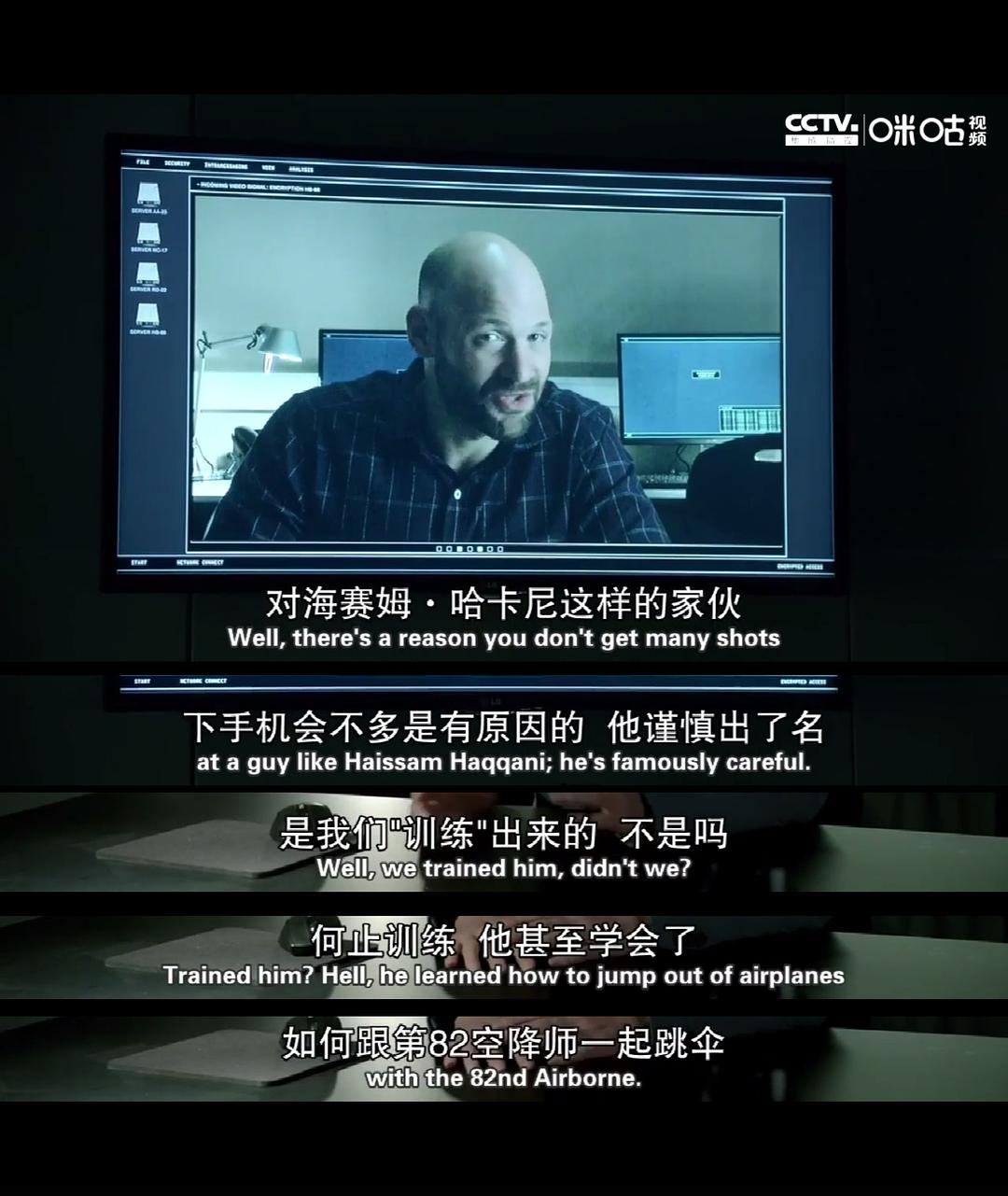 记得S4E01有一段卡莉说哈卡尼,“我们基本上是训练他和82师一起跳伞”,暗示着剧中塔利班头目哈卡尼的背景可能就是当初在巴基斯坦被美军训练过的人之一。
