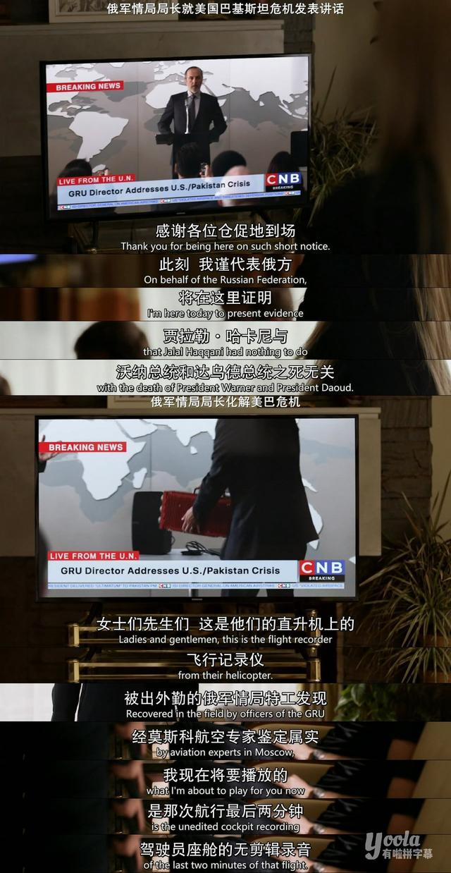 此时,拿到索尔视频的卡莉将线人信息告知了叶帅。叶帅看完视频后将信息发给了正在联合国开会的GRU局长。拿到名字后,索尔家中的GRU特工撤走。