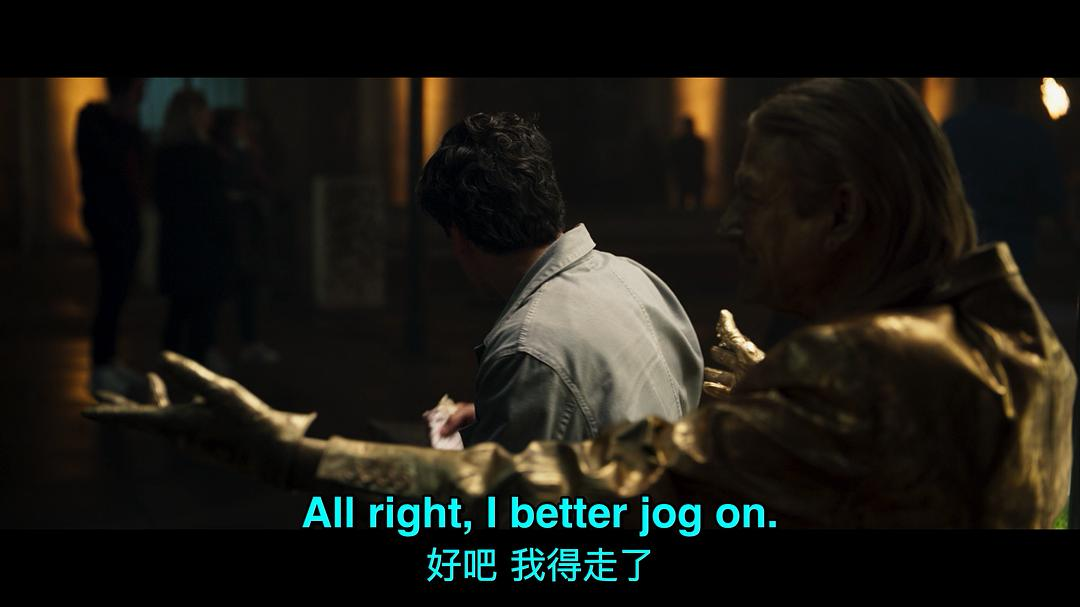 see you on the flip flop其实“I’ll see you on the way back.”,这个表达也可以说成See you on the flipside. 这里大致是Steven出来休息一下,这会儿要回去工作了,等回家的时候再路过,再和这个行为艺术者继续‘聊天’。
