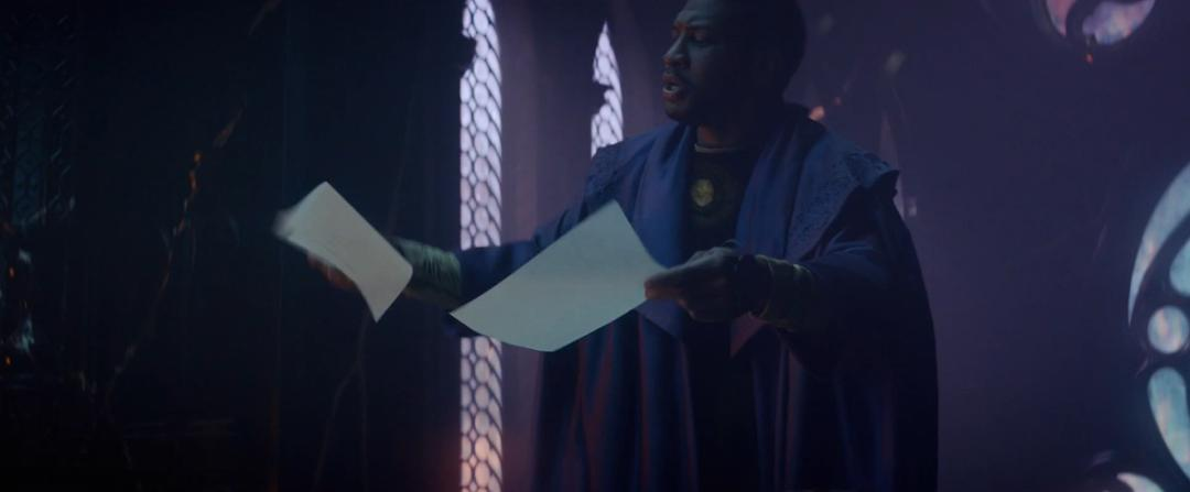 值得注意的是亚瑟召唤胡狼的时候,地板呈现的特效是紫色的,这个紫色首先让人想到是征服者康,还有《旺达幻视》阿加莎的魔法,也让人联想到《蜘蛛侠英雄无归》破裂的多元宇宙时空,还有《奇异博士2》那个次元空间也是呈现紫色,似乎紫色是MCU中多元宇宙和虚空领域的代言色了。