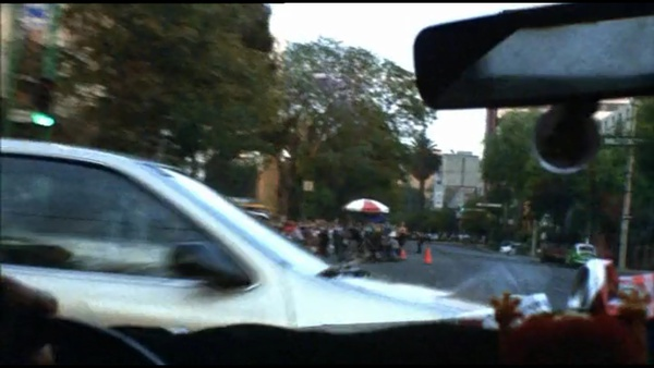 05:30 由静切入动。剪入第三个故事主人公。中景,隔物(车流,车流还制造动感)探视。这组介绍镜头持续28’’,剪入7个镜头,继续生成混乱、动感。