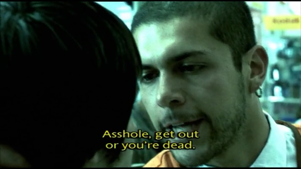 二,MTV化的叙事。和导演的职业经历有莫大关系。总体而言,《爱情是狗娘》用极其现代的形式讲述了三个极为老套的故事。故事主题可以用两个词来概括,爱和背叛。但形式却非常之超前。除了上文所论述的结构奇巧外,导演大胆地采用了MTV的拍摄方式。比较典型的有两处,集中在奥克塔瓦的故事当中。第一个出现从37分33秒开始,最大的特征是电子风格的音乐,很MTV化的拍摄了奥克塔瓦斗狗和哥哥拉米罗抢劫的日子(/或状态),音乐据导演本人介绍,来自拉美一支叫CONTROL MACHETE的摇滚乐队。第二个MTV片段出现在44分48秒处,主要是奥克塔瓦找人教训拉米罗,以及和莎萨娜的感情。和第一处不同的是,这一段有人声出现,完全可以独立抽出作为一首MTV来播放。这种MTV的方式出现在现代电影里早不是什么新鲜事,主要和现代人的欣赏习惯有关,视觉化,冲击性的画面阅读,是现代最主要的信息来源,在某种程度上构成对经典好莱坞营造“白日梦”的反抗。仔细观察可以发现,在两段MTV里,奥克塔瓦VS拉米罗,有一个显著的比对,在虚焦,快切之下,观众不难察觉,奥克塔瓦的胜利是暂时的,背后隐藏着更大的危机。在这两处明显的MTV叙事之外,整个片子的剪辑都遵循一种视觉至上的要求,这也就是很多人嫌恶此片肮脏血腥的主要原因,但构成的冲击力却是不言而喻的。当然,虽然在形式上的创新是《爱情是狗娘》的一个大卖点,但通观整个片子,无论是剪辑手段还是故事原型,都还是好莱坞电影的那一套。以片头为例,触目而来的两个镜头就是高速拍摄的街镜,非常之绚目晃眼,但切到第三个镜头就放慢了速度,是一个街道的全景拉入车内,镜头四是开车的奥克塔瓦的侧脸特写。从这四个镜头,还是传统戏剧叙事里开头的大全镜交代环境——中景别交代故事发生场景——特近景交代故事主人公的模式。再看整个片头,两分钟时间内,总共有72个镜头,多处运用流畅剪辑的手法,和《真实的谎言》(/或者任何一部好莱坞大片)里的追汽车场面如出一辙,非常之刺激,非常之完整的一场戏。可见在后现代的讲述情境下,导演始终是要以经典的叙事方式为基础来加以创新,毕竟观众的欣赏心理是长期沉淀的定型,不是轻易可以改变的,对传统形式的尊重,本身也可以看做是一种对于观众的尊重。