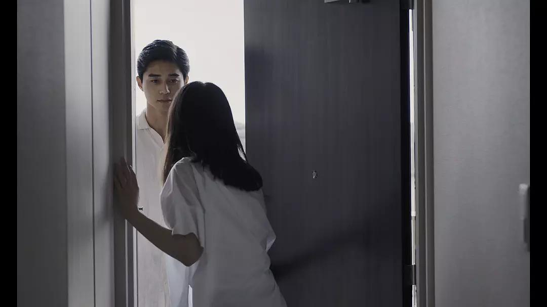 一出分不清是幻想还是现实的戏里,朝子打开门看到麦,赶紧闭门退缩到一隅,这时的音乐和麦的形象无疑是朝子潜意识里压抑的情感的爆发,入侵了维稳的生活。朝子和亮平相处的5年在电影时间里短促成“接下不表”,而这一刻麦的“入侵”又长得让人心惊。电影语言的魔力放大了心理真实。