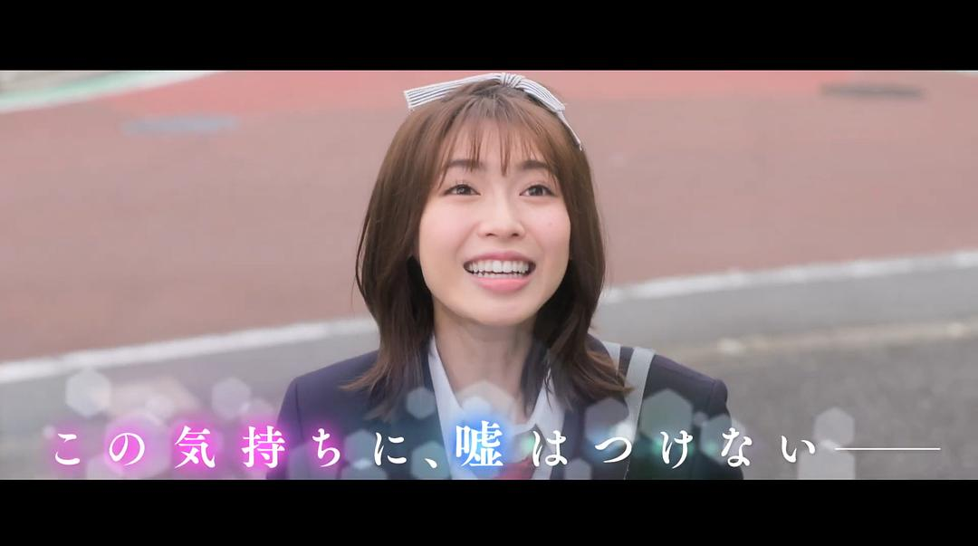 之后用几个画面带从男主转学来后如何一点点撩(划掉,是走进)女主的内心,然后女主在好友的怂恿下去表白却被男主一句从没把你当作过恋爱对象给拒绝得透心凉。这里白石酱演得真好,被男主拒绝时边眼泪就在眼里打转了,但还要强颜欢笑说没事那我们就做朋友吧没让眼泪掉出来。牛逼!最后只能在放学回家路上独自一人黯然垂泪,此时非常合时宜地出现了电影标题:胸が鳴るのは君のせい,故事就从这里开始。