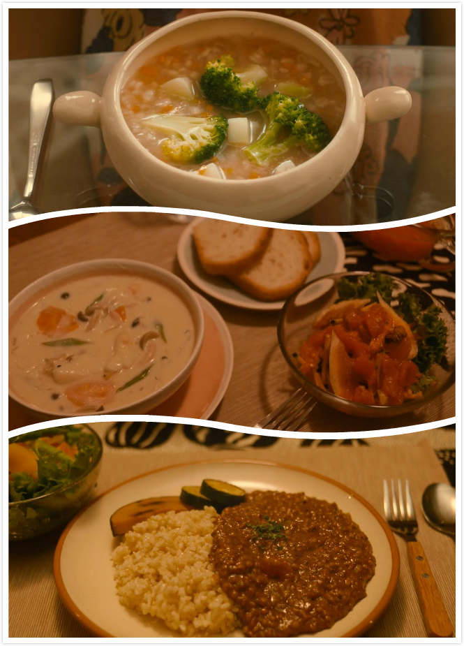 然后是这剧实在太健康了…不是主张吃素,就是喝麦茶,简直养生。男主简直可以开现在很流行的素食餐厅了,素菜便当真是做了各种花样。《苦中带甜的滋味》这标题大概是因为里面稍微详细地教做了一款苦瓜茶碗蒸…而且最终讨厌吃素的女主完全爱上了吃素,不再喜欢吃肉了。