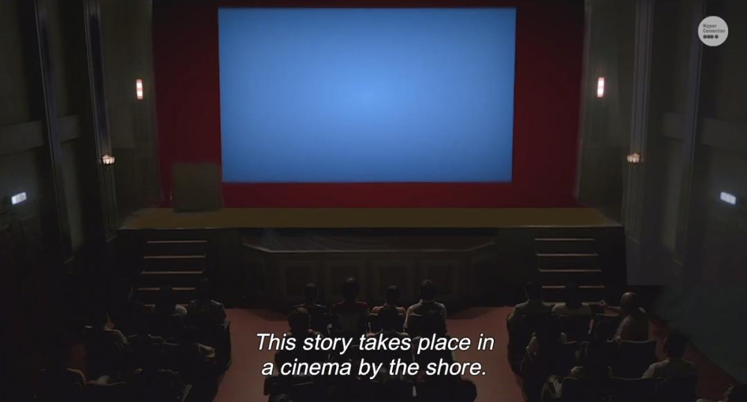 如同《花筐》中男主“俊彦”的名字和结尾出现的导演椅,大林宣彦在《海边电影院》里也同样埋藏了关于他个人的线索:男主之一毱男回忆起童年的自己,转动着活动写真机、在胶片上画漫画放映、被外国导演称作内心有着映画魂,想必这些都有着大林宣彦的童年色彩。